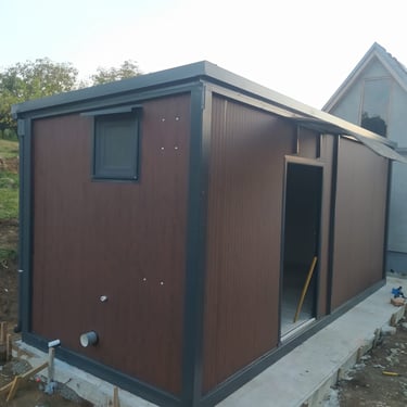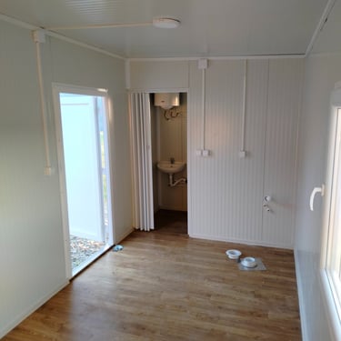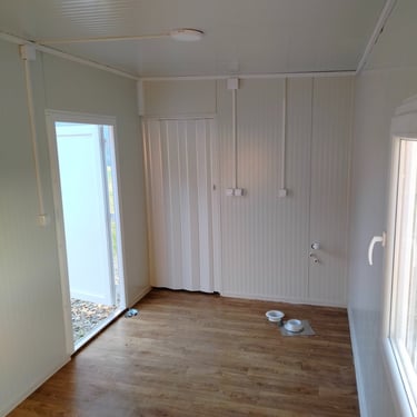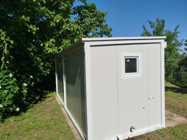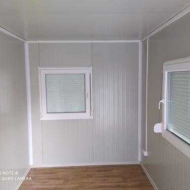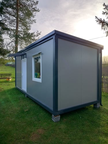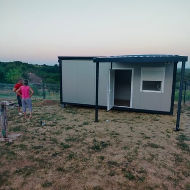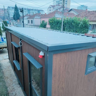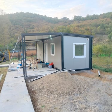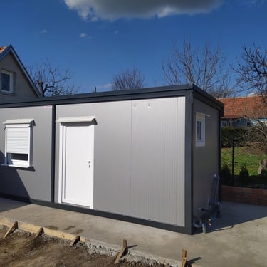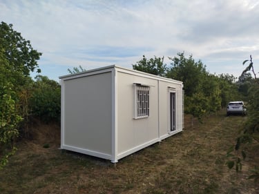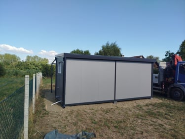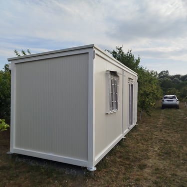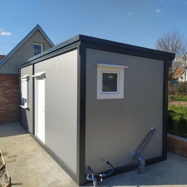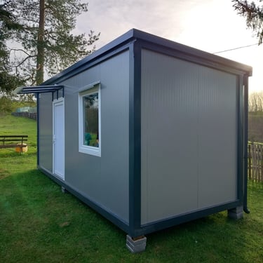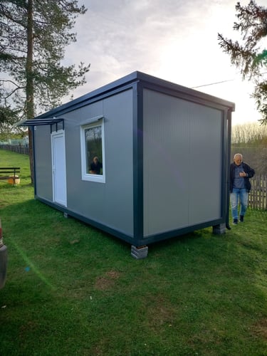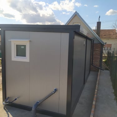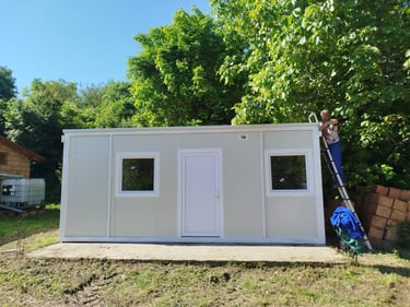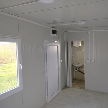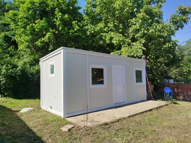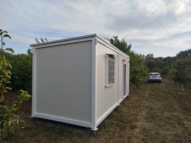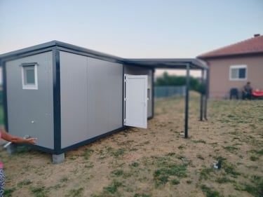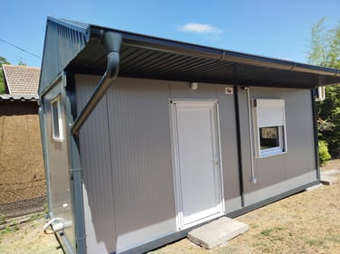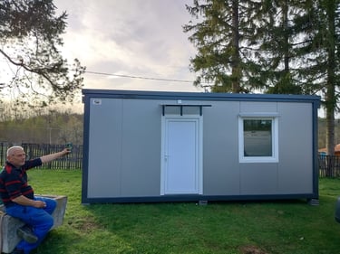 Kontejneri za stanovanje od oko 15 m² idealno su rešenje za one koji traže male, ali potpuno funkcionalne prostore. Kompaktni i praktični, pogodni su za stanovanje, vikendice, kancelarije ili privremeni smeštaj. Ovi modeli dolaze sa integrisanim kosim krovom ili dodatnim krovom sa čeličnom podkonstrukcijom i limom s antikondenz filcom, obezbeđujući zaštitu od vremenskih uslova. Udobnost i funkcionalnost mogu se dodatno unaprediti prilagođavanjem rasporeda, broja prozora i vrata prema željama kupaca. Brzi za montažu i energetski efikasni, ovi kontejneri za stanovanje nude savremeno i praktično rešenje za različite potrebe.