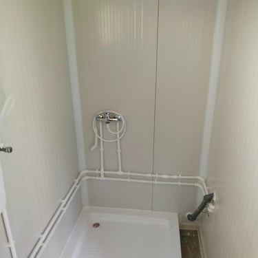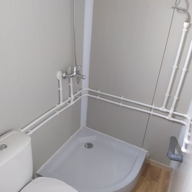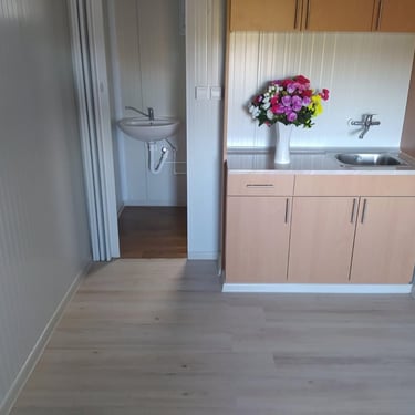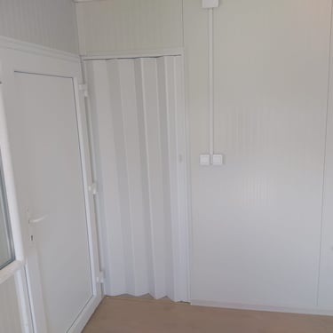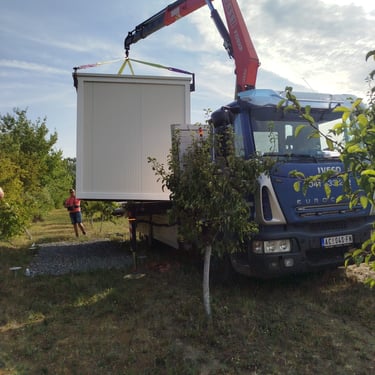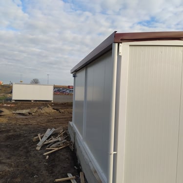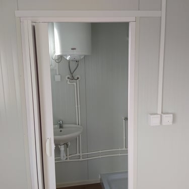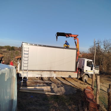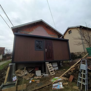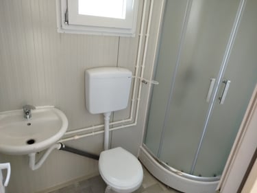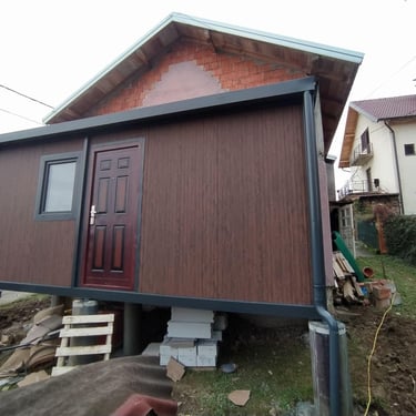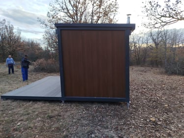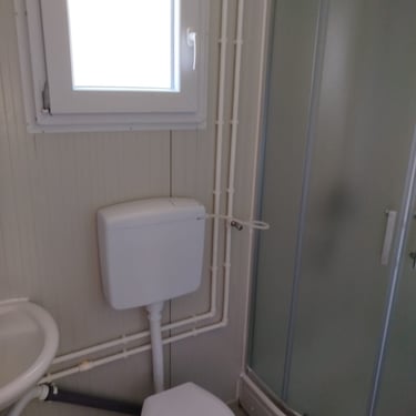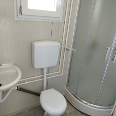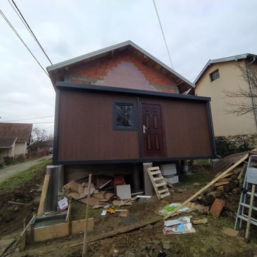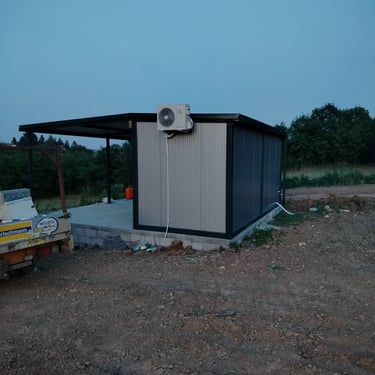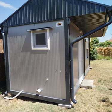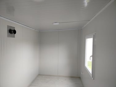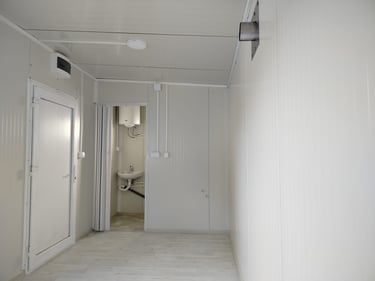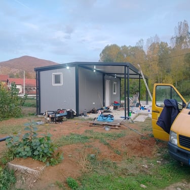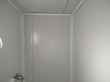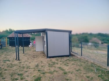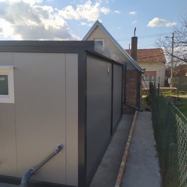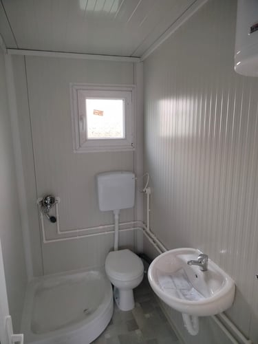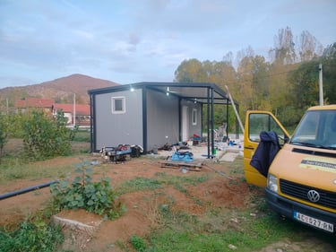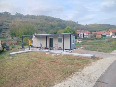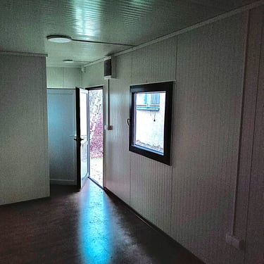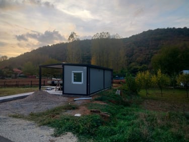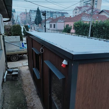 Kako bismo ove izazove uspešno rešili, naši kontejneri za stanovanje dolaze sa kosim krovom koji omogućava nesmetano oticanje vode i snega, a dodatni krov sa čeličnom podkonstrukcijom i limom s antikondenz filcom pruža još bolju zaštitu. Olučni sistem, kao kod klasičnih kuća, efikasno odvozi padavine, a po želji mogu se dodati nadstrešnice. Koristimo sendvič panele brenda Alternativa u visokoj energetskoj klasi, koji su dugotrajni i estetski privlačni. Dodatno, troslojni pod sa termo i hidroizolacijama pruža dugovečnost. U enterijeru se fokusiramo na maksimalno iskorišćenje prostora, prilagođavajući raspored prema željama kupaca, čime naši kontejneri za stanovanje nude funkcionalnost, udobnost i energetski efikasnost u kompaktnom formatu.