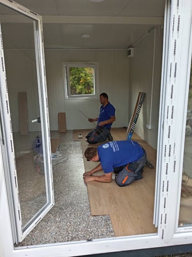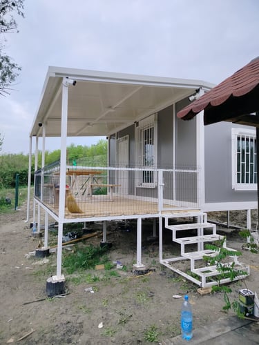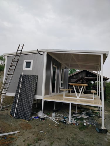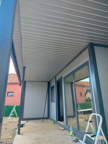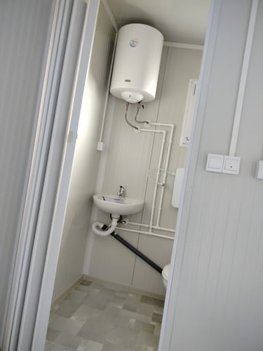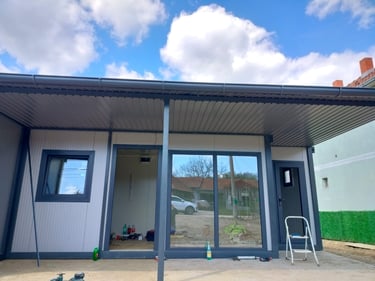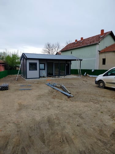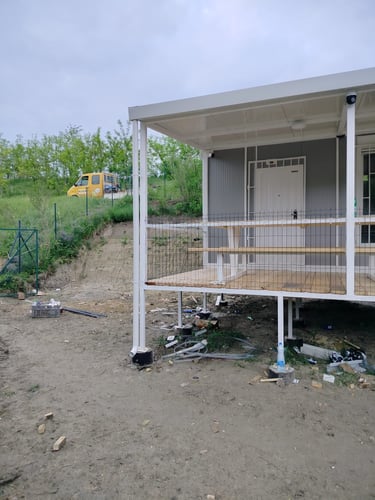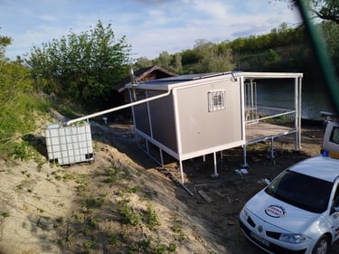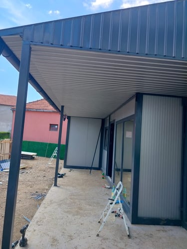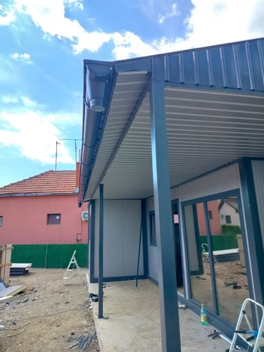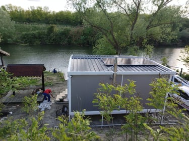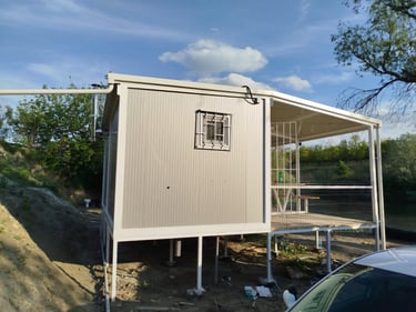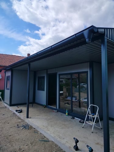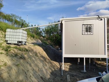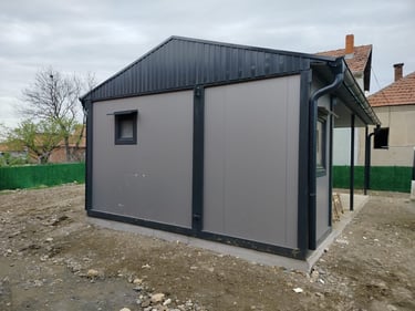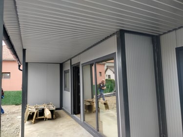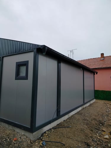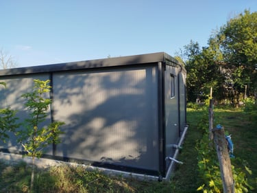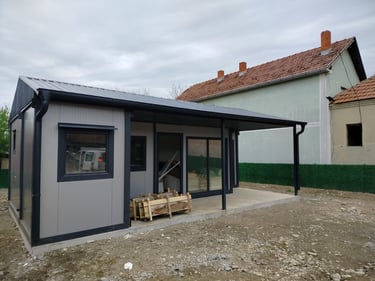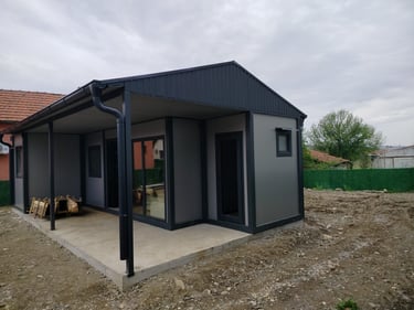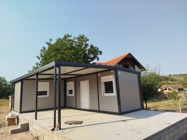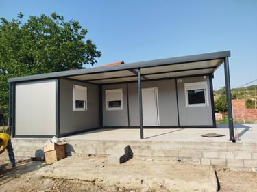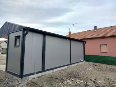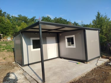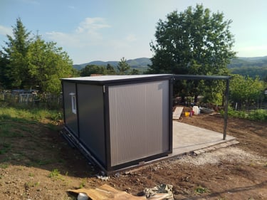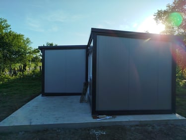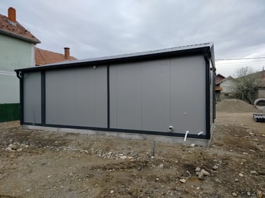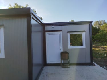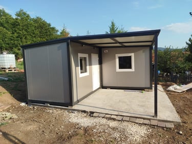 Za rešavanje ovih izazova, naši kontejneri dolaze sa fleksibilnim dizajnom koji omogućava izbor između pravougaonog oblika ili slova L, čime se maksimalno optimizuje prostor. Dodatni krov sa čeličnom podkonstrukcijom i limom s antikondenz filcom, zajedno sa integrisanim kosim krovom, osiguravaju nesmetano oticanje padavina. Korišćenje sendvič panela brenda Alternativa u visokoj energetskoj klasi i troslojni pod sa termo i hidroizolacijama garantuju odličnu energetsku efikasnost, dugotrajnost i estetski prijatan izgled, čime je postignut savršen balans između praktičnosti, komfora i kvaliteta.