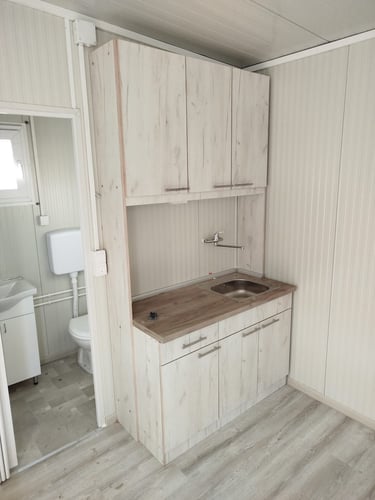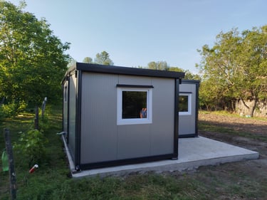 Kontejneri za stanovanje od oko 22 m² predstavljaju savršen izbor za one koji traže komforan i funkcionalan prostor. Idealni su za stanovanje, vikendice ili kancelarije, sa mogućnošću izbora između pravougaonog oblika ili oblika u slova L, sa dve prostorije i kupatilom. Ovaj model pruža dovoljno prostora za sve osnovne potrebe, uz mogućnost prilagođavanja rasporeda prema željama kupca. Koristimo visokokvalitetne sendvič panele brenda Alternativa, koji garantuju izuzetnu energetsku efikasnost i dugotrajnost. Pored toga, sa savremenim dizajnom i energetski efikasnim rešenjima, naši kontejneri za stanovanje nude savršen balans između praktičnosti, udobnosti i estetike.