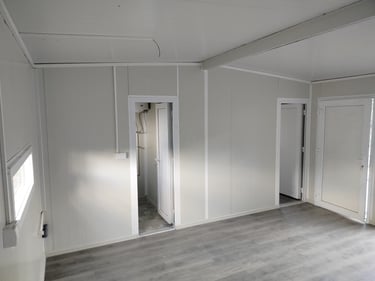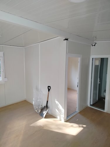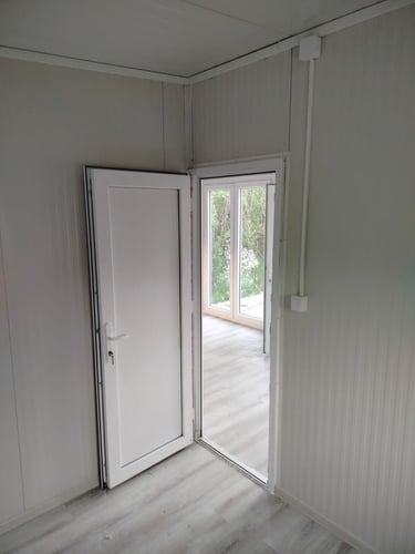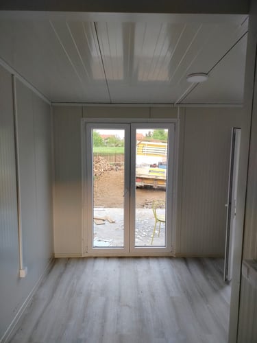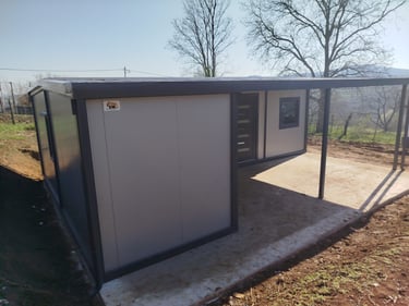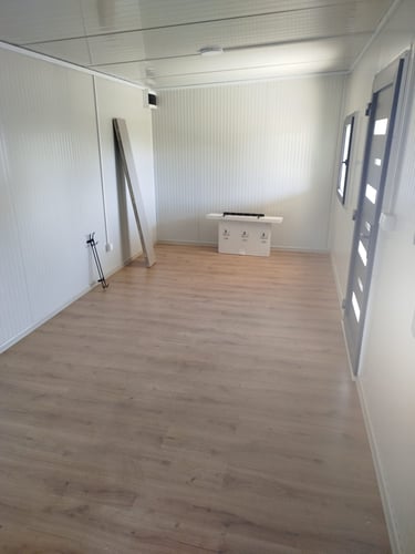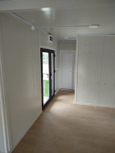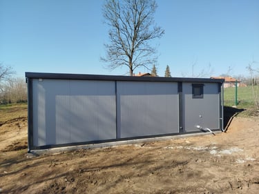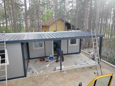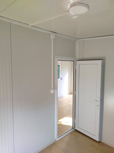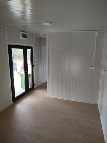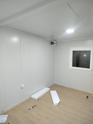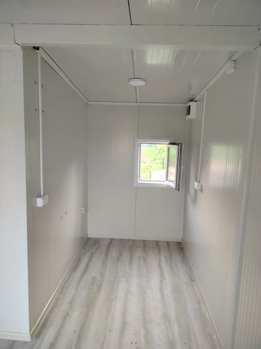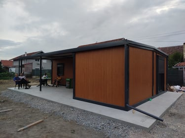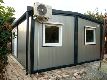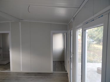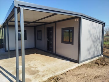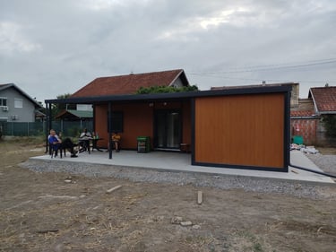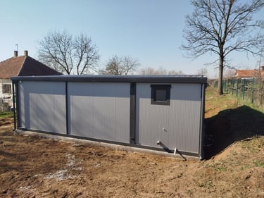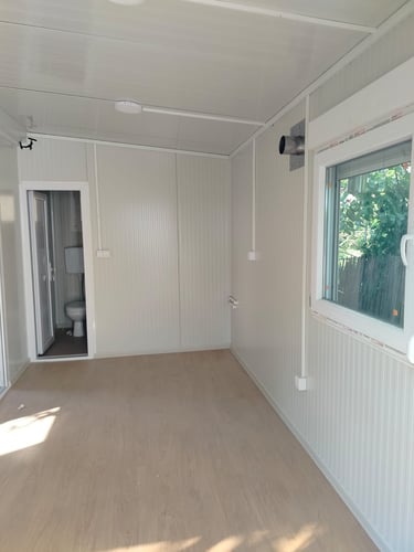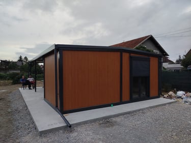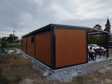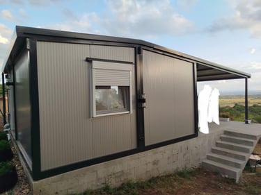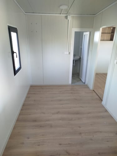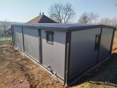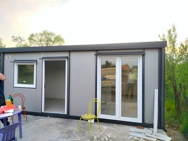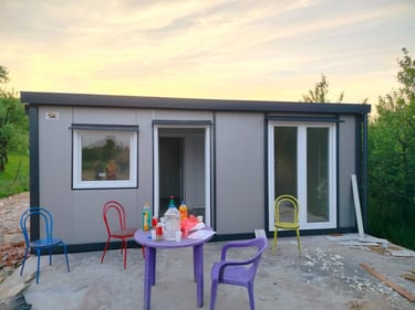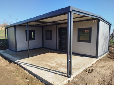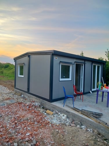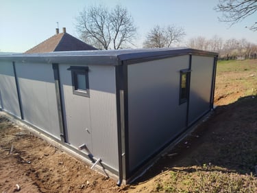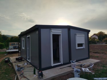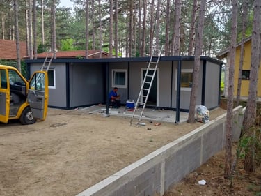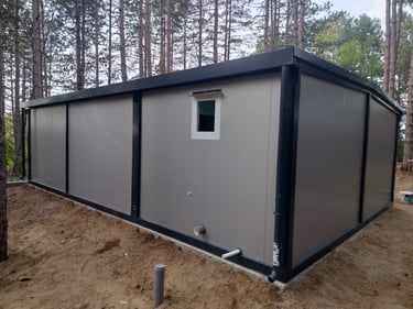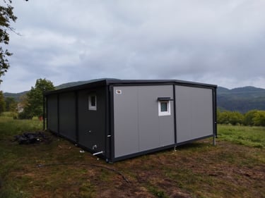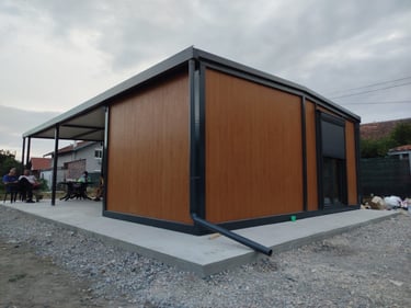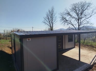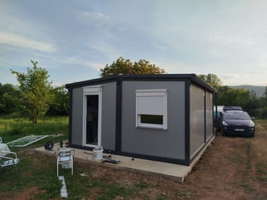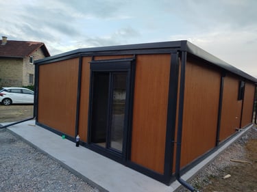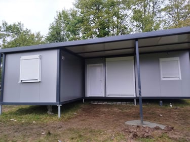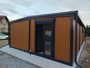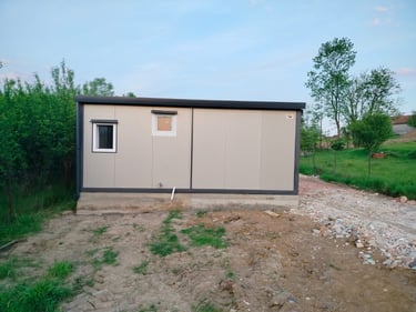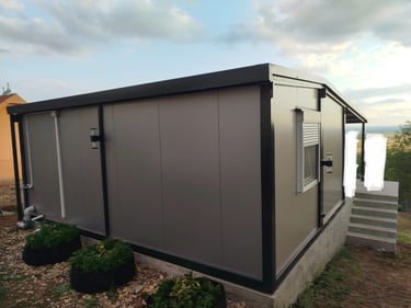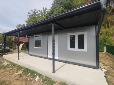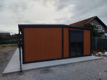 Naši kontejneri za stanovanje od oko 30 m² savršeno rešavaju ove izazove, bilo da su u L obliku ili pravougaonog oblika, omogućavajući maksimalnu fleksibilnost u rasporedu prostora. Kosi krov na dve vode i olukni sistem, sličan onima na klasičnim kućama, omogućavaju efikasno slivanje padavina i zaštitu od vremenskih uticaja. Korišćenjem sendvič panela brenda Alternativa u visokoj energetskoj klasi i troslojnim podom sa termo i hidroizolacijama, obezbeđuju se izuzetna energetska efikasnost i dugotrajan komfor. Estetski dizajn kontejnera omogućava da se savršeno uklopi u okolinu, dok fleksibilnost u rasporedu omogućava prilagođavanje svakom korisniku, pružajući funkcionalnost i udobnost.