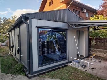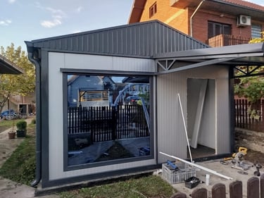 Sa kosi krovom na dve vode ili dodatnim krovom sa čeličnom podkonstrukcijom i limom sa antikondenz filcom, ovi kontejneri obezbeđuju zaštitu od padavina i dugotrajnost. Visoka termo i hidroizolacija garantuje komfor tokom cele godine, dok prilagodljiv raspored omogućava stvaranje prostora po meri.
